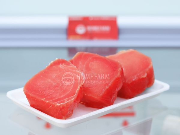 Tại Homefarm, cá ngừ đại dương cắt lát được đóng gói thành túi 500g, mỗi túi khoảng 4-5 miếng cá. Cá được đóng gói kép, hút chân không từng miếng.